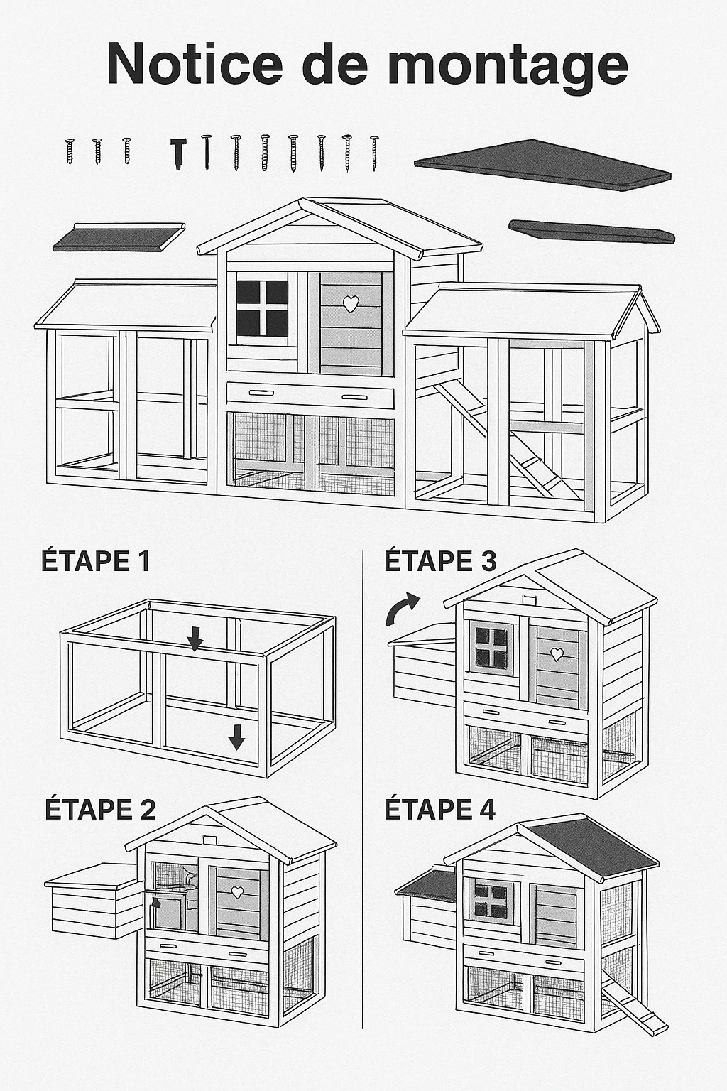 ⚠️ Ce kit ne contient aucun élément physique – pas de bois, pas de vis, pas de grillage. Vous recevrez uniquement un fichier PDF téléchargeable avec les plans et les étapes de montage.