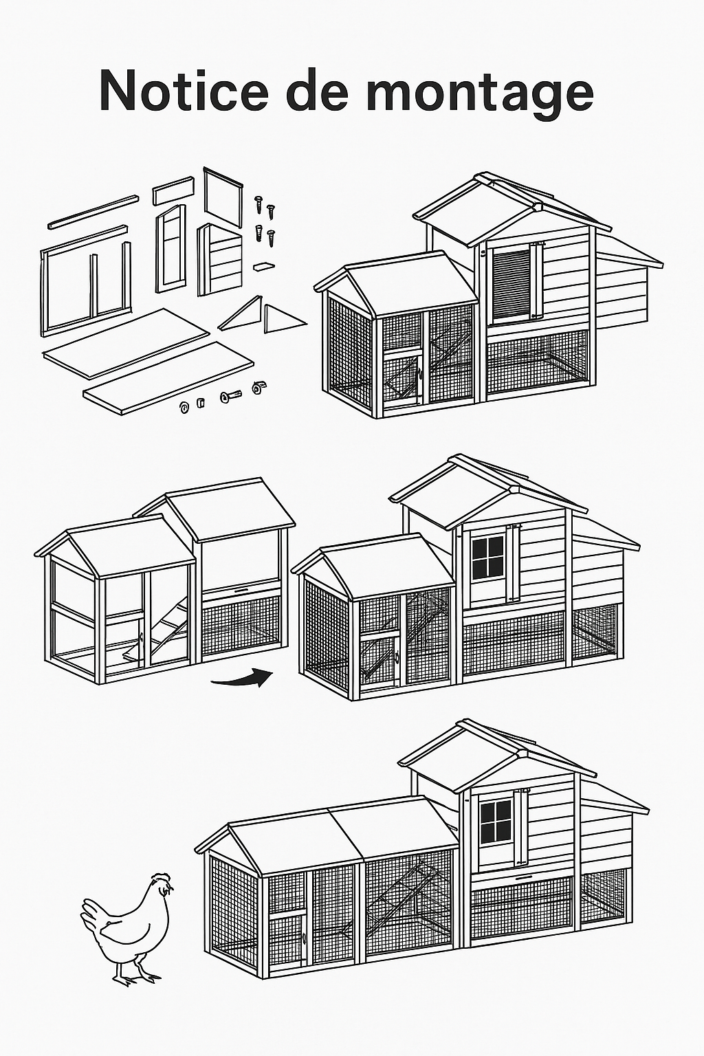 Vous venez dâadopter le poulailler Medium Double, idĂ©al pour hĂ©berger plusieurs poules dans un espace spacieux et sĂ©curisĂ© ? Ce kit de montage visuel vous guide Ă©tape par Ă©tape pour assembler rapidement et facilement votre installation.