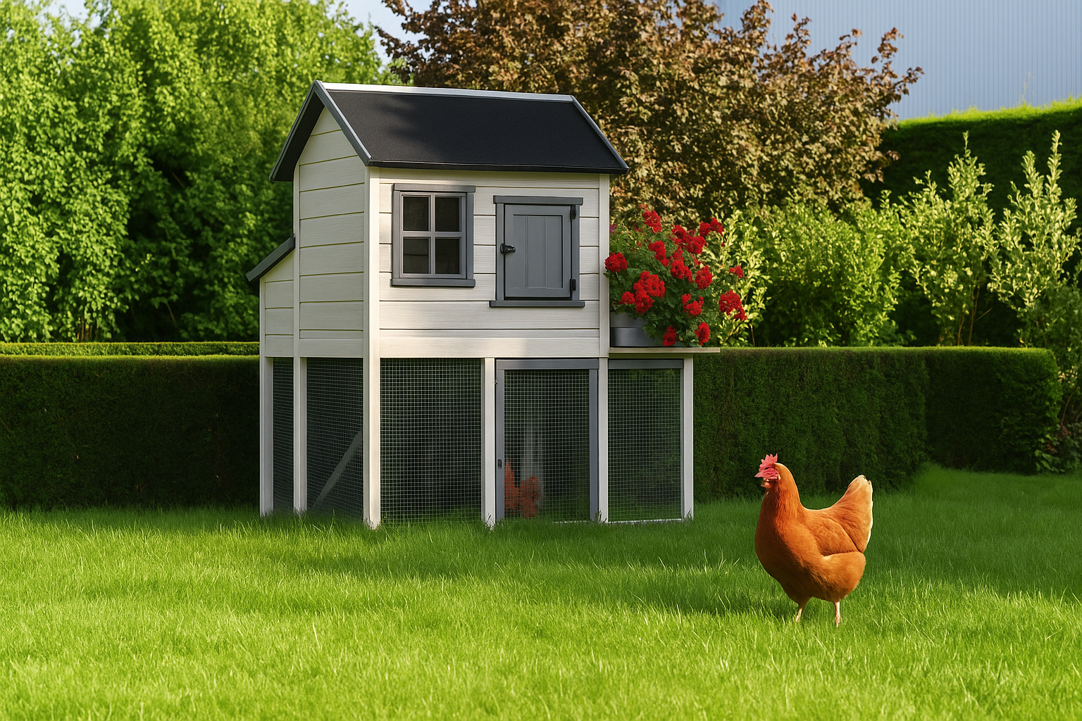 đĄ Conseil pratique : montez votre poulailler sur une surface plane, Ă proximitĂ© dâun point dâeau et dâombre pour le bien-ĂȘtre de vos poules.