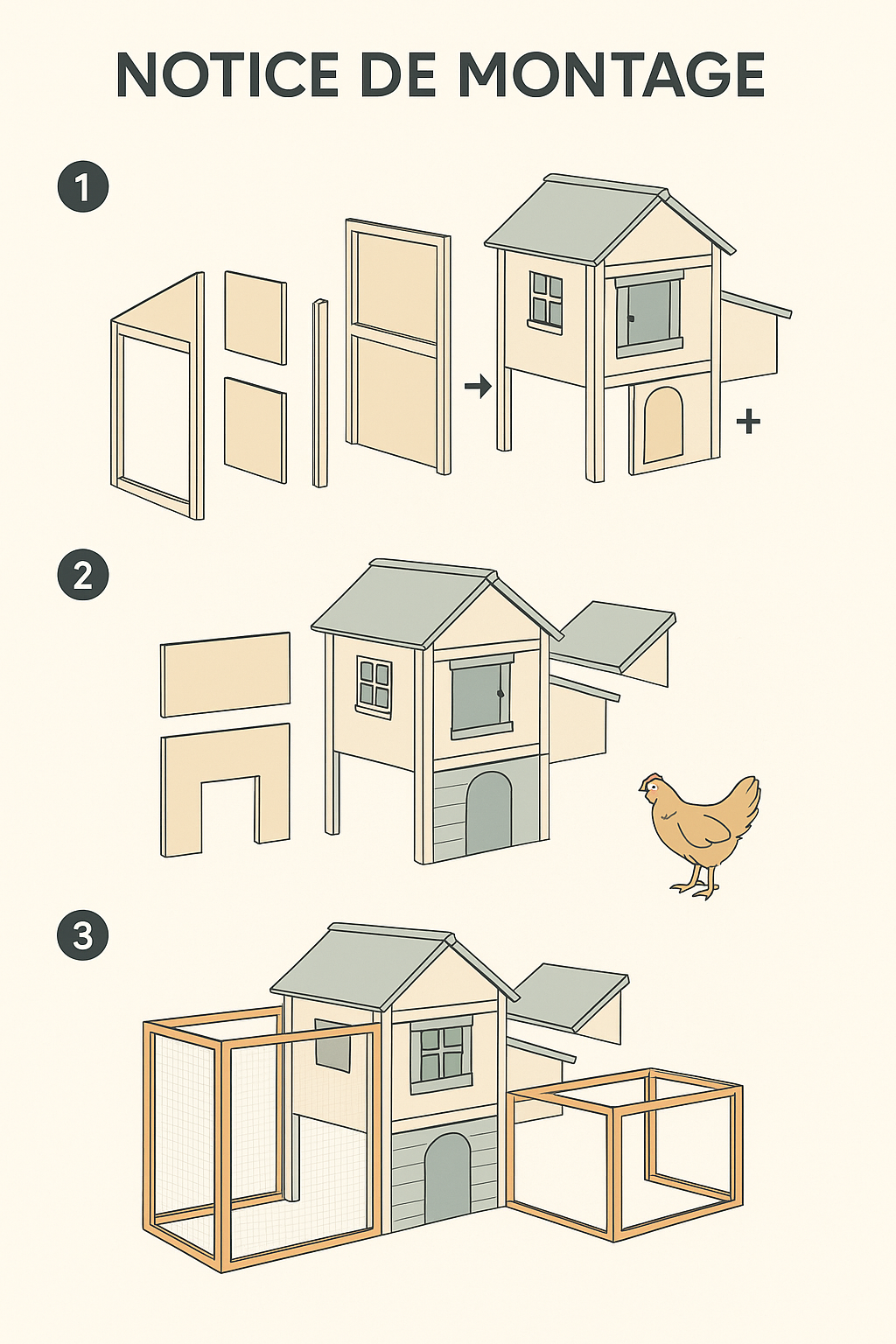 âĄïž TĂ©lĂ©chargez votre notice de montage visuelle et assemblez votre poulailler Sunshine sans stress !